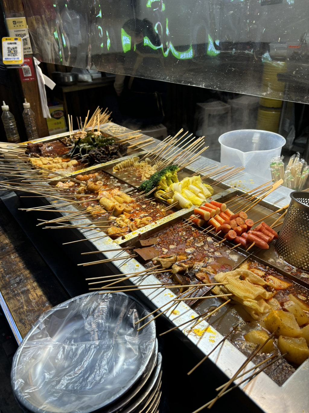 입구에 마라촬(麻辣串) 팔고 있었어