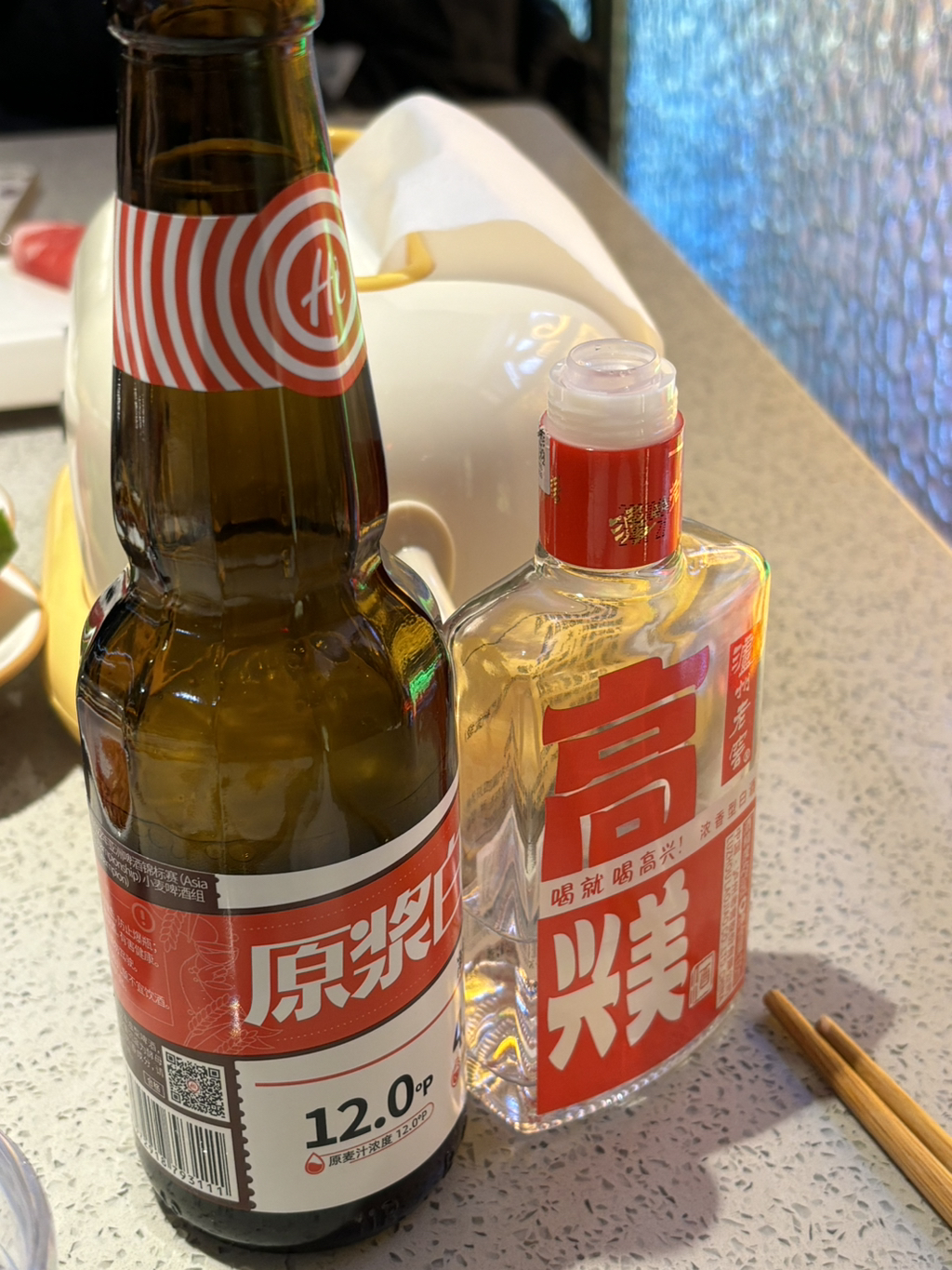 고량주를 22위안(약 4천원) 에 팔길래 궁금해서 원장맥주랑 시켜봤어