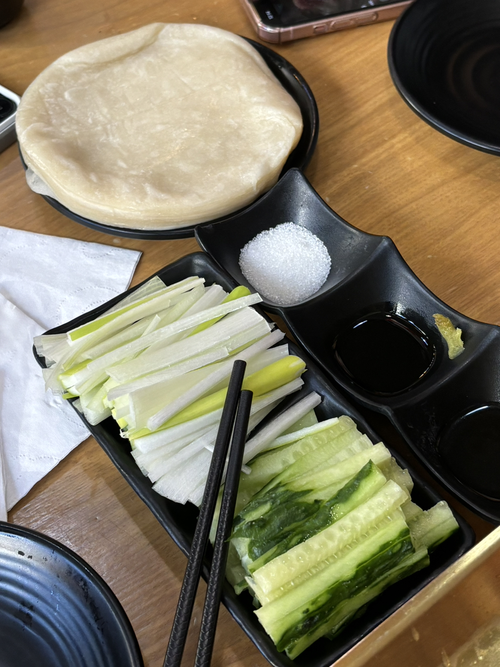 같이 싸먹는 소스, 오이, 파, 전병