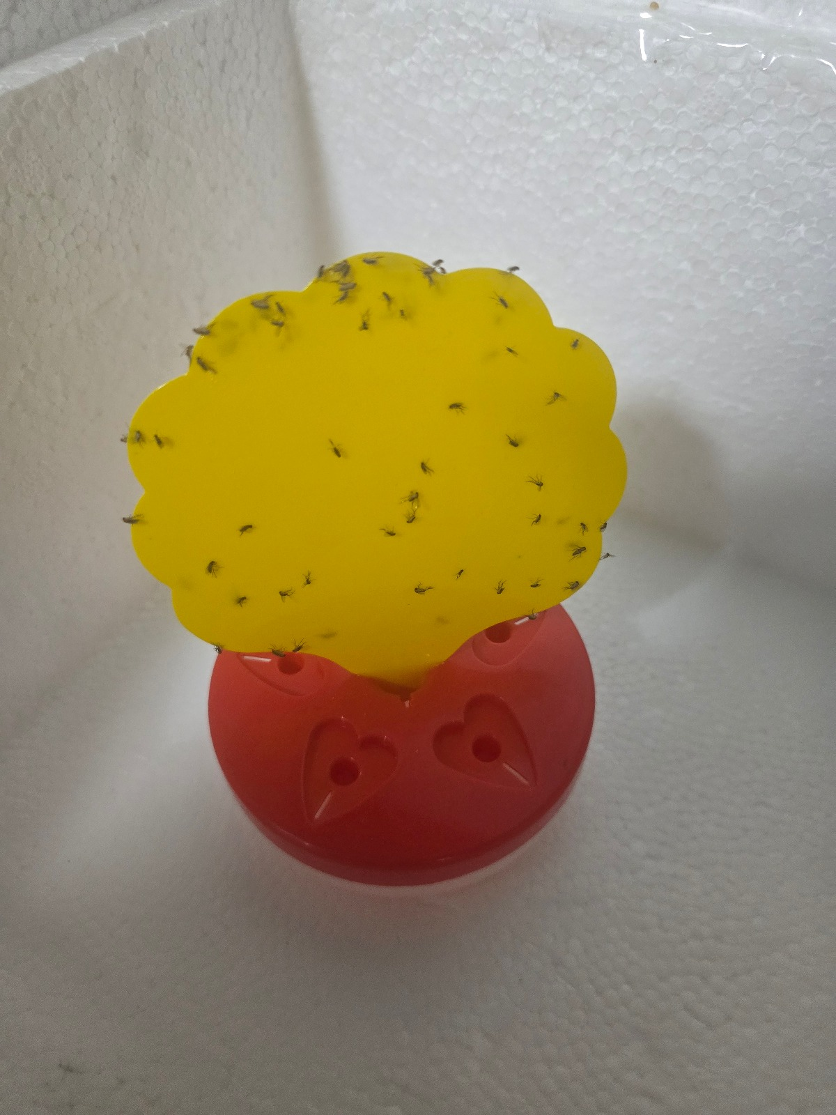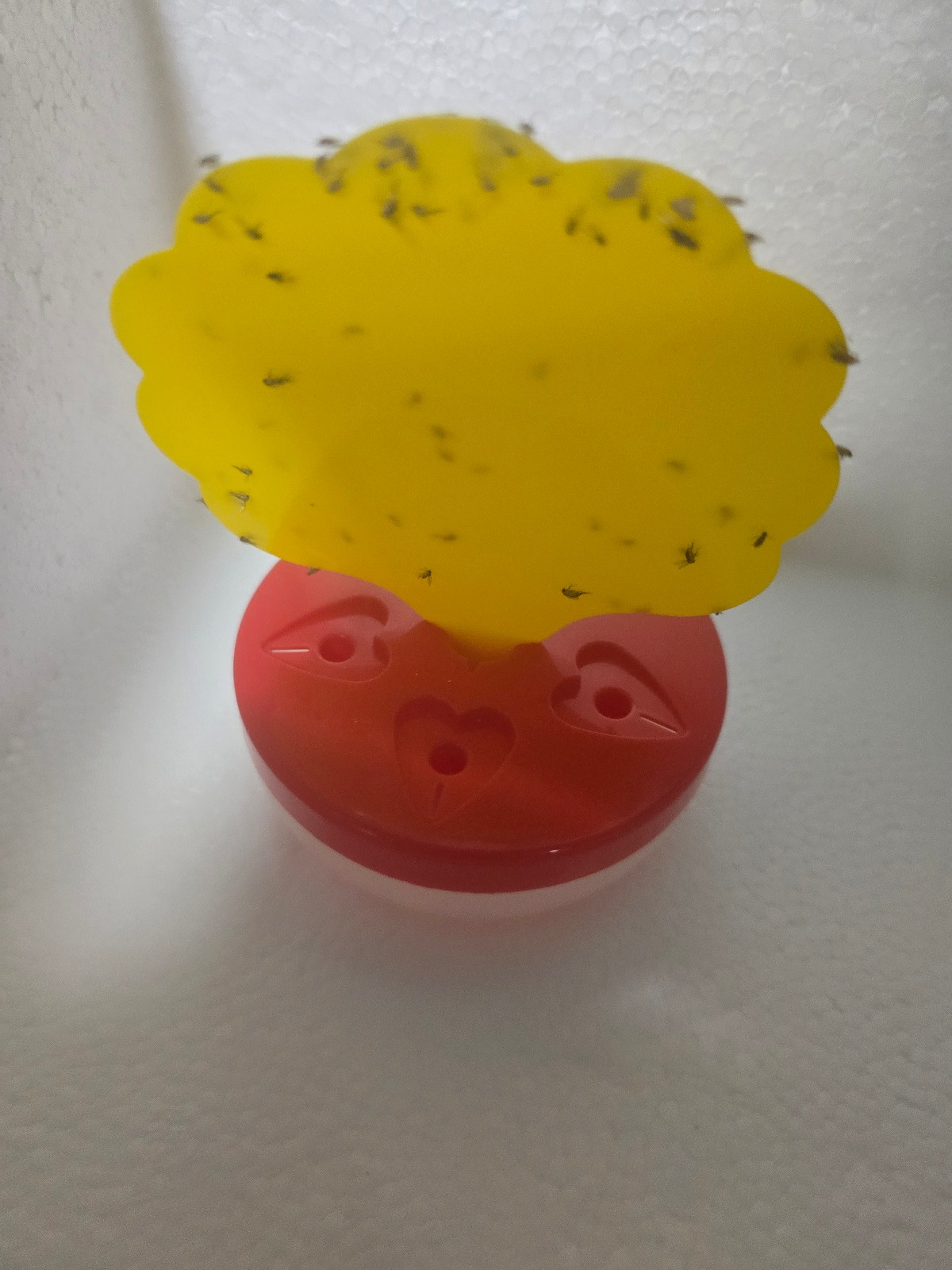 노란색이 앞뒷면 끈끈이인데 거기에 초파리가 붙어 죽음