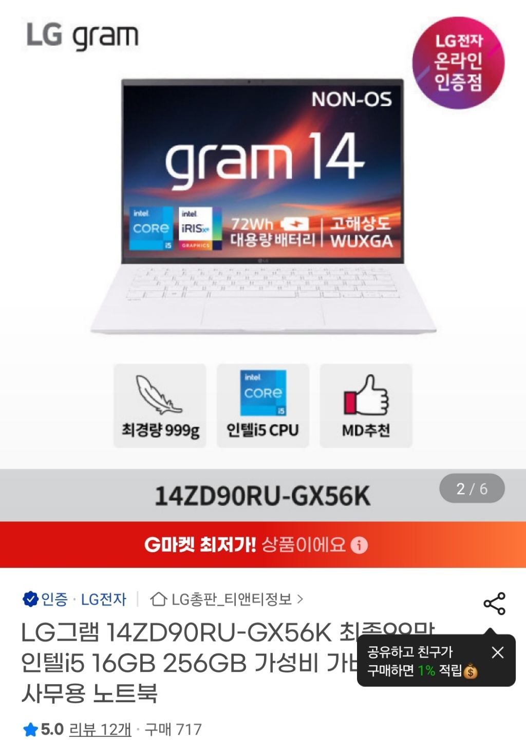 저렴한 가격에 가벼운 가성비 = LG그램 14ZD90RU-GX56K