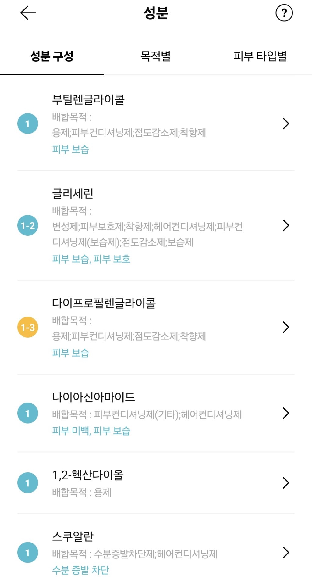 저는 그래서 항상 화장품을 사기 전에 성분 부터 정리해둬요. 전 회사에서 교육 받았던 부분이기도