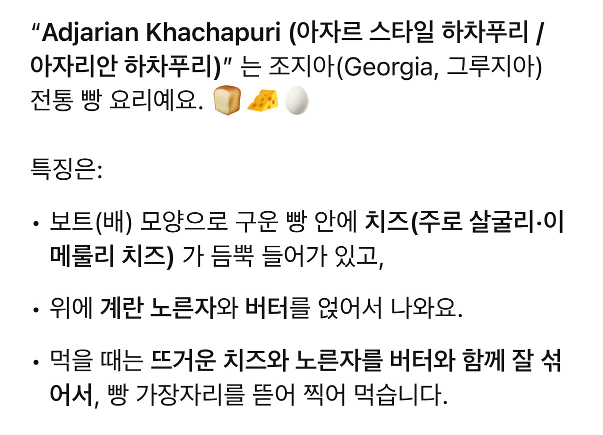KHACHAPURI 는 저런 조지아식 빵인데 피자처럼 내부에 여러가지 토핑을 올리는 듯?