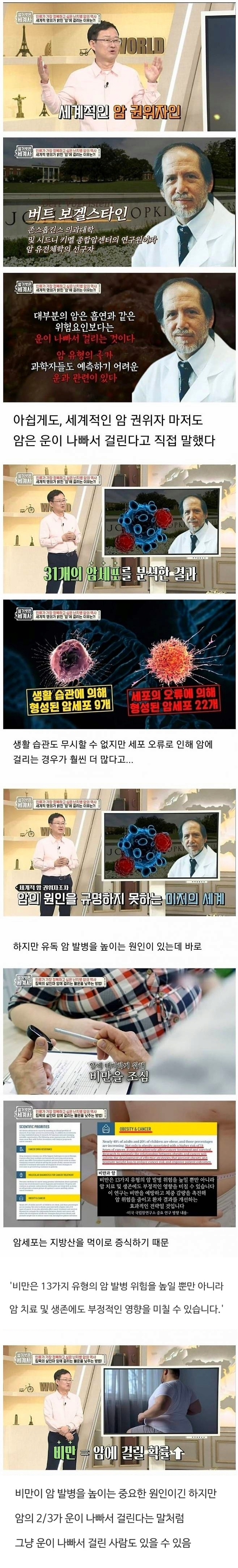 답댓글 작성자알싸한마라엽떡 작성시간 25.10.14 유전도 어느정도 맞말이긴 한게 암이 발생하는 이유는 유전자 변이가 일어나서 발생하는건데 우리 몸은 똑똑해서