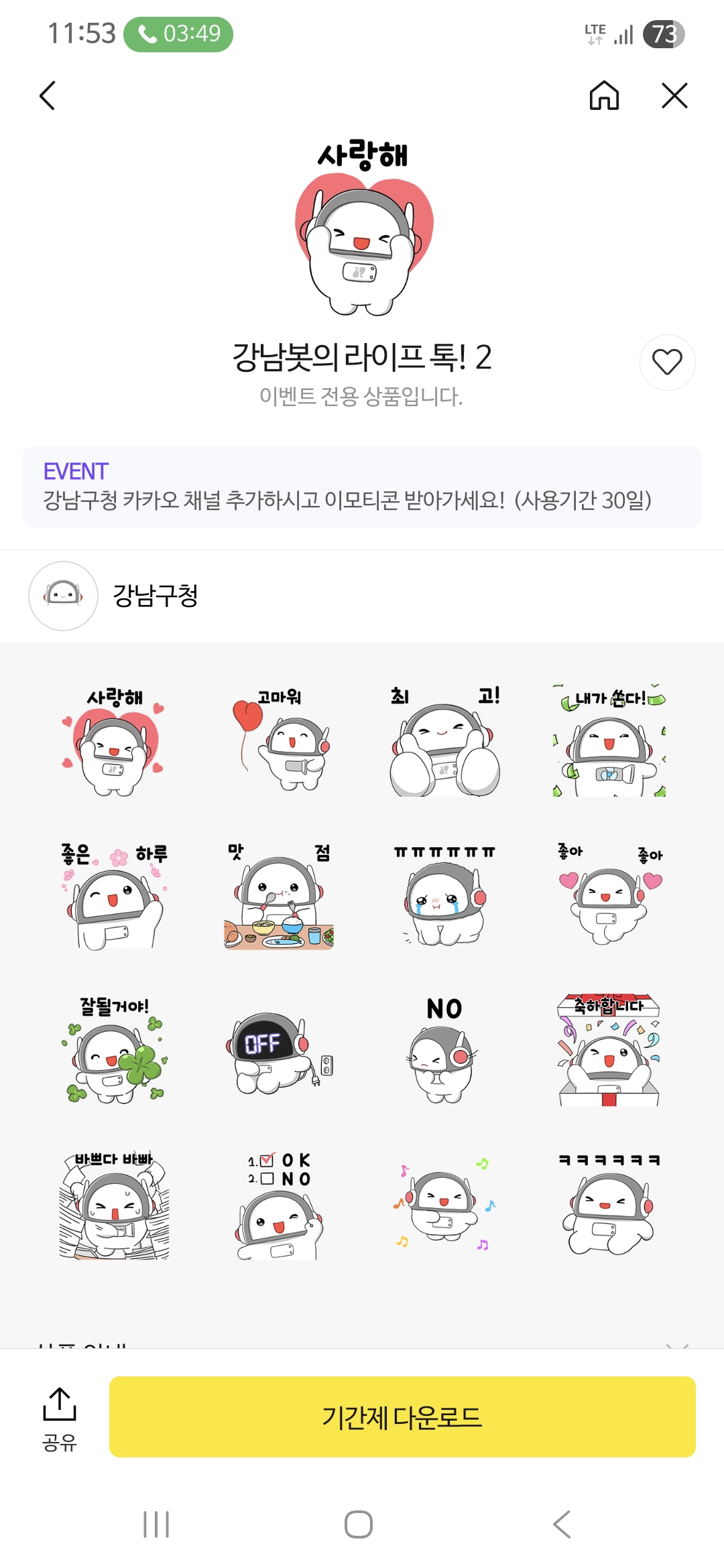 [무료이벤트]카카오톡 무료 이모티콘 작성자미국인|작성시간25.10.24|조회수10,810 목록 댓글 16 글자크기 작게가 글자크기 크게가 출처 : 여성시대 (미국인)30일 사용가능선착순 지급 소진시 종료http://pf.kakao.com/_xmYAxbd강남구청안녕하세요, 강남 소식을 신속히 전해 드리는 강남구청입니다. 친구 맺고 다양한 소식을 받아보세요!pf.kakao.com 다음검색 현재 게시글 추가 기능 열기 북마크 공유하기 신고 센터로 신고 댓글 댓글 16 댓글쓰기 답글쓰기 댓글 리스트 작성자다이다이 | 작성시간 25.10.24 오 아직도 준다 고마워! 작성자52.김태균 | 작성시간 25.10.24 고마워!! 작성자아기 락스타 | 작성시간 25.10.24 고마워~ 작성자동구리동동둥둥 | 작성시간 25.10.24 고마워! 작성자범이올시다 | 작성시간 25.10.24 짱귀 고마워~ 댓글 전체보기