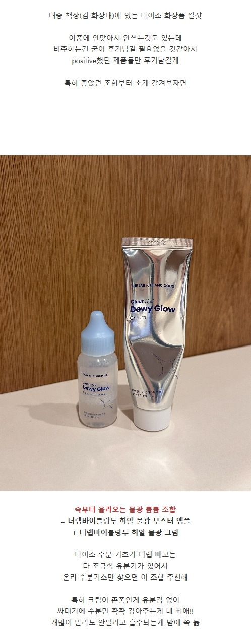 작성자아니그게아니고!!! 작성시간 25.10.31 더랩바이블랑두 물광 어쩌구 앰플이랑 크림 지금 3통도 넘게 쓰고 있음.. 넘 무난해서 딴 거 쓰다가도 결국 다시 돌아와서 또 씀 ㅋㅋㅋ
