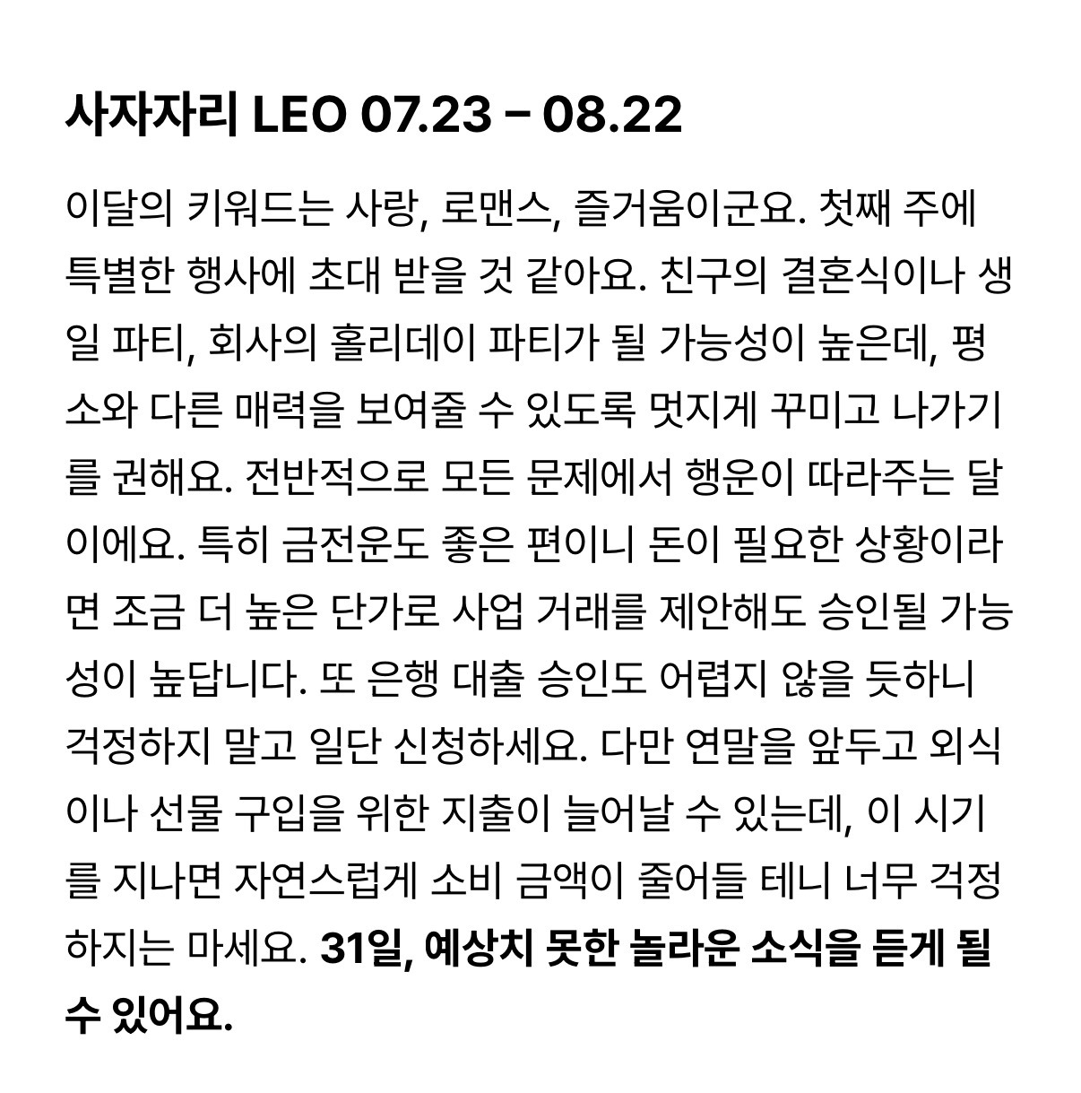 그래서 이 운세 안에 마음에 드는 문장이 없어도, 여시들이 스스로 충분히 마음에 드는 날들을 만들어 나가면 되지않을까