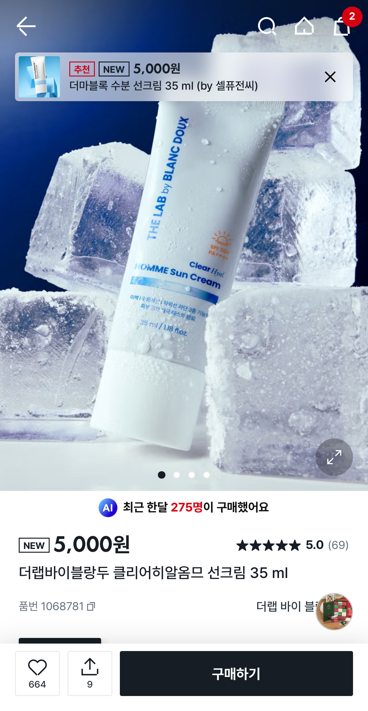 A. [다이소] 더랩바이블랑두 클리어히알옴므 선크림