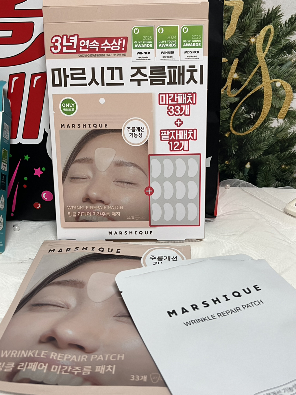 4.마르시끄 링클 리페어 미간주름 패치 올리브영 어워즈 한정기획(미간33개+팔자12개) / 10,900원