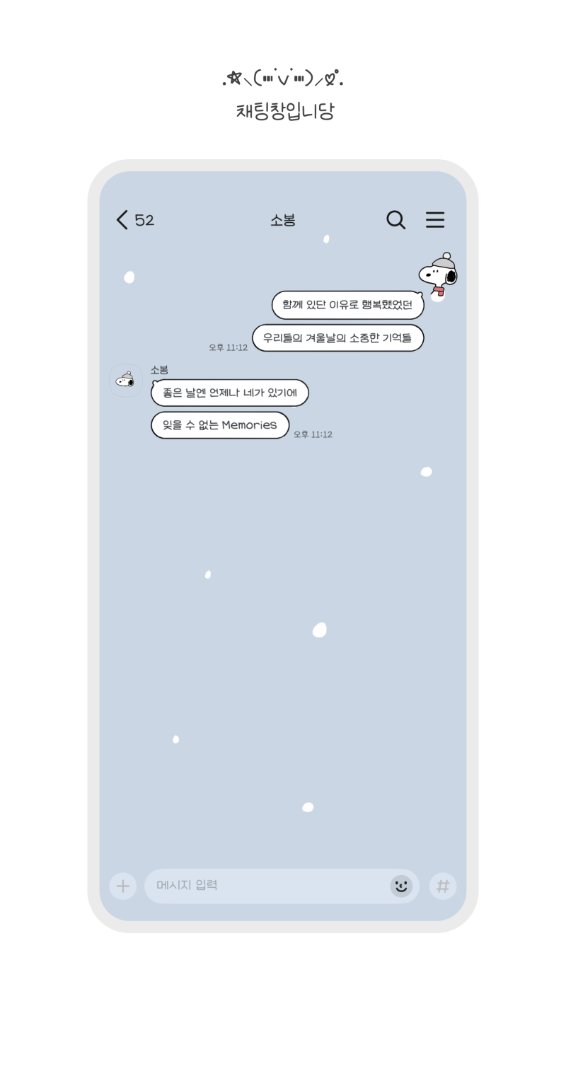[폰꾸미기][AND/iOS] 소봉님 따뜻한 겨울의 스누피 카톡테마 작성자김 재영|작성시간25.12.02|조회수17,222 목록 댓글 90 글자크기 작게가 글자크기 크게가 출처 : 여성시대 김 재영https://m.blog.naver.com/sovvong/224092599137[AND/iOS] 따뜻한 겨울의 스누피안뇽하세요 여러분! 여러분들은 겨울하면 어떤 캐릭터가 가장 먼저 떠오르시나용? 저는 스누피가 제일 먼저...blog.naver.com 스누피 너무좋아해서 가지고왔음~ 다음검색 현재 게시글 추가 기능 열기 북마크 공유하기 신고 센터로 신고 댓글 댓글 90 댓글쓰기 답글쓰기 댓글 리스트 작성자포에버와칸타 | 작성시간 25.12.06 너무귀엽다ㅜㅜ 잘쓸게여 작성자ㅎㅎㅎㄹㄹ | 작성시간 25.12.07 으아졸귀 너무 귀여워 겨울내내 이거 써야지 작성자껄껄깔깔낄낄 | 작성시간 25.12.16 너무귀어우ㅏ여 ㅠㅠㅠ 작성자행복한인생살기 | 작성시간 25.12.20 귀엽다 고마워! 작성자패럿피쉬 | 작성시간 26.02.17 감쟈합니다 🎉🎉 댓글 전체보기