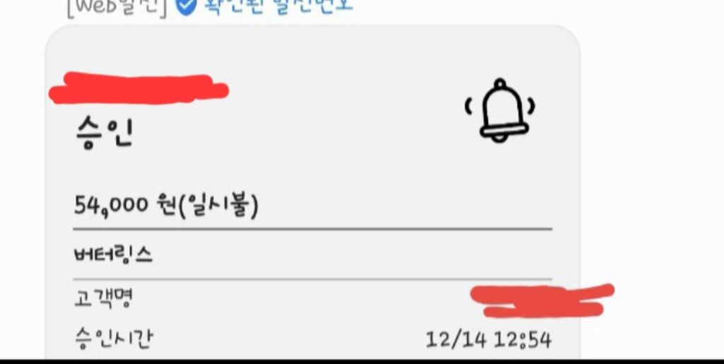 친구가 선물로 사줘서 친구한테 결제내역 캡차해달라함