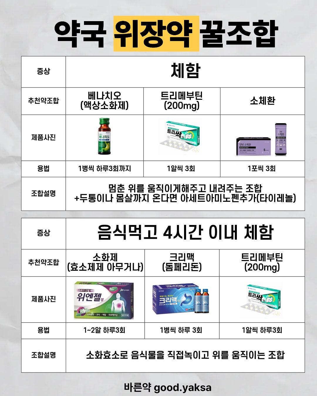 [건강정보]약사가 추천하는 체할 때, 토할 때, 설사할 때 약조합 작성자크리스마스쫀득쿠키|작성시간26.01.12|조회수17,604 목록 댓글 36 글자크기 작게가 글자크기 크게가 출처 : https://theqoo.net/square/3968038999 다음검색 현재 게시글 추가 기능 열기 북마크 공유하기 신고 센터로 신고 댓글 댓글 36 댓글쓰기 답글쓰기 댓글 리스트 작성자달좋은밤 | 작성시간 26.01.17 고마워ㅜㅜ 작성자우나링링 | 작성시간 26.01.17 소체환도 좋아 정리고마우ㅜ 여샤👍🏼 작성자이막사리 | 작성시간 26.01.18 고마워!! 작성자대표님 | 작성시간 26.01.19 약간 트리싹 만병통치약이네ㅠ 고마워 오늘 병원다녀옴..ㅠ 작성자스튜어트4568 | 작성시간 26.01.19 트리싹 내 비상약 댓글 전체보기
