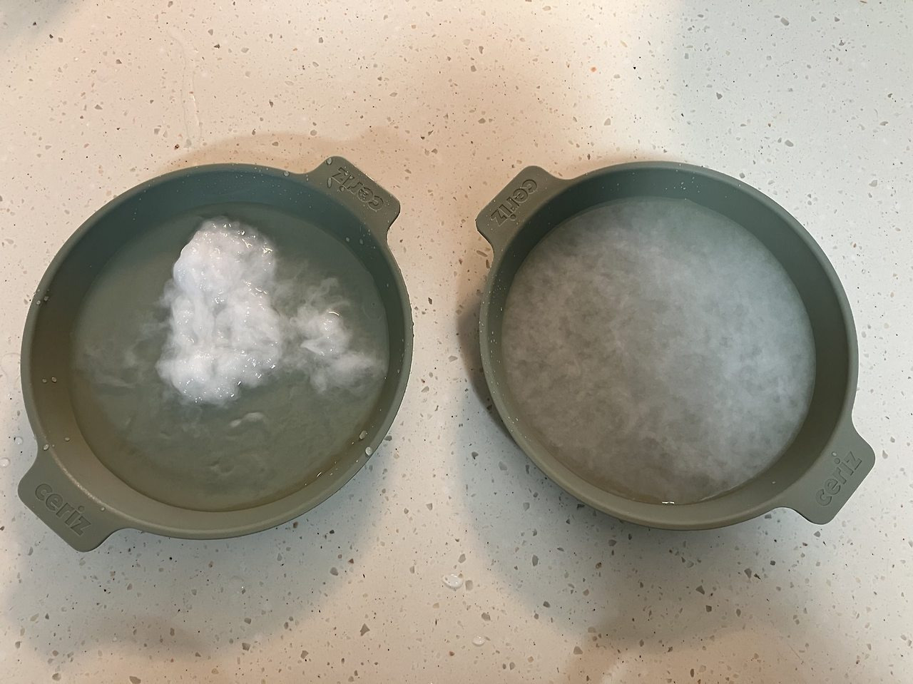 결과 공개 사용한 물티슈 : 크리넥스 마이비데 (사진상 왼쪽) 사용한 휴지 : 커크랜드 휴지 (사진상 오른쪽) 1. 24시간 방치 시에는 아무런 분해가 일어나지 않음. 녹색 그릇에 분해 흔적이 없음. 2. 통에 그대로 옮겨 담아서 2분간 흔들어 봄 (배수관 유압에 의한 분해 재현)