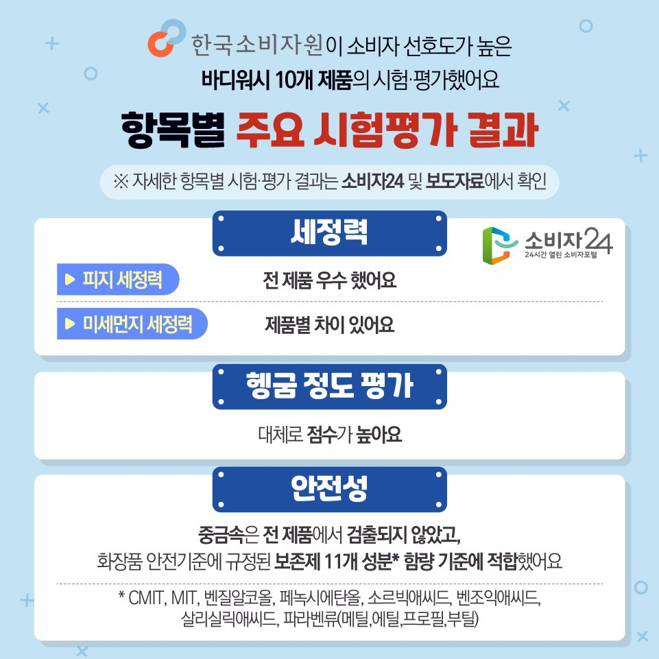 [생활정보]소보원이 추천하는 바디워시 순위표 작성자마시멜로우불구이|작성시간26.01.30|조회수48,424 목록 댓글 35 글자크기 작게가 글자크기 크게가 출처 : https://theqoo.net/square/4001757731 https://x.com/Favorites_S1/status/1991824177134031171?s=20 X의 내가 사고싶은 것들님(@Favorites_S1)소보원이 추천하는 바디워시 순위표x.com 다음검색 현재 게시글 추가 기능 열기 북마크 공유하기 신고 센터로 신고 댓글 댓글 35 댓글쓰기 답글쓰기 댓글 리스트 작성자오라일락향기 | 작성시간 26.02.01 역시 도브 최고 작성자rvdrbd | 작성시간 26.02.01 도브로 다시 가야겠다 작성자HYUNDAI | 작성시간 26.02.02 도브 진짜 가성비 좋음 작성자편안하게살자 | 작성시간 26.02.03 고마워 ! 난 버베나 향이 안질려서 이걸 기본으로 다른거랑 섞어써 작성자배추조사무조사 | 작성시간 26.02.04 헹굼점수가 높다는거 물을 조금 쓴다는건가? 댓글 전체보기