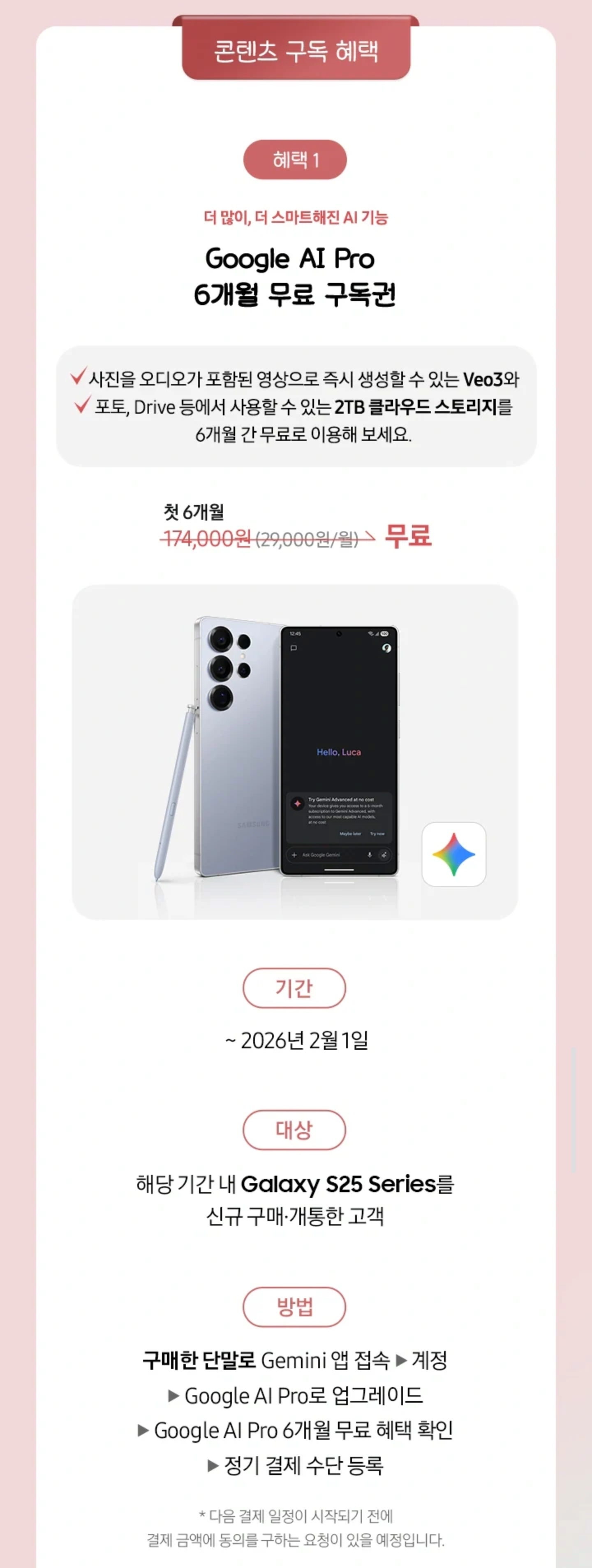 [무료이벤트]종료ㅜㅜㅜ🚨갤럭시 s25 제미나이 6개월 무료구독 내일까지임(~2/1)🚨 작성자추워료|작성시간26.01.31|조회수13,337 목록 댓글 149 글자크기 작게가 글자크기 크게가 출처 : 여성시대 추워료이제 안되나봐 😭s25 쓰는데 아직 안한 여시들 까먹지말고 빨리 구독해!! 다음검색 현재 게시글 추가 기능 열기 북마크 공유하기 신고 센터로 신고 댓글 댓글 149 댓글쓰기 답글쓰기 댓글 리스트 작성자럭키vicky | 작성시간 26.02.01 2월 1일까지라메! 작성자개귀엽잔아 | 작성시간 26.02.01 쌰갈 작성자울랄라라리 | 작성시간 26.02.02 헐시바 좃댓다 작성자치타휀 | 작성시간 26.02.03 ㅠㅠㅠㅠ아깝다 쌰갈 작성자모글모글 | 작성시간 26.02.03 앗 ㅁㅊ 이제봄 댓글 전체보기