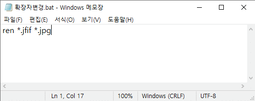 그럴 때 메모장을 켜서 ren *.(이전 확장자명) *.(바꾸고 싶은 확장자명)