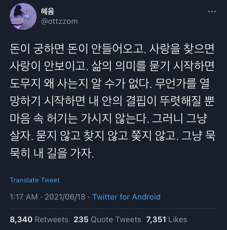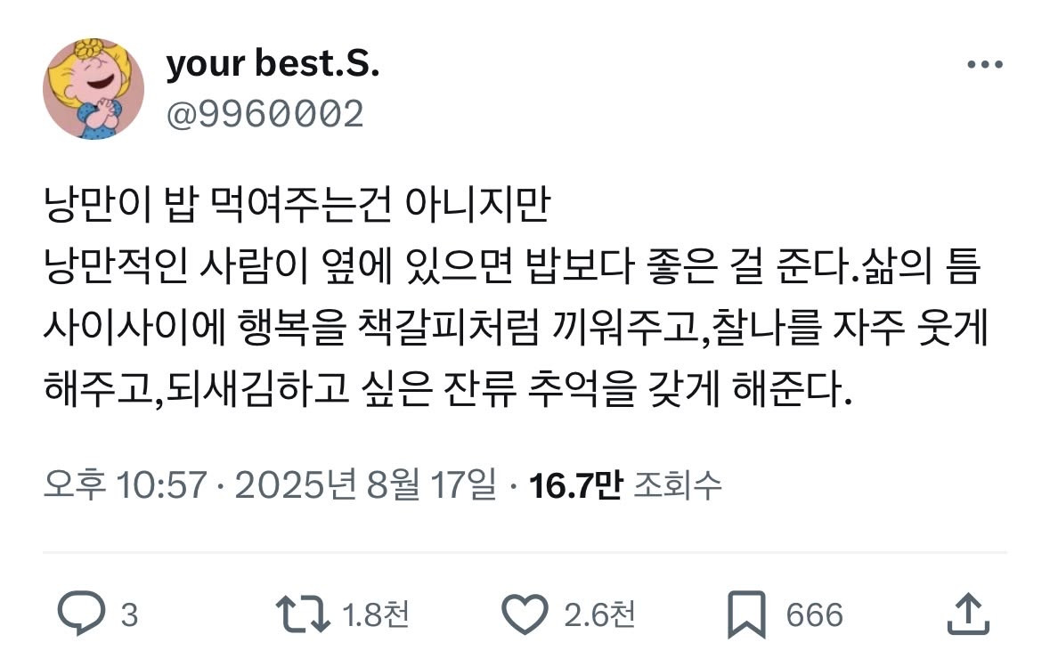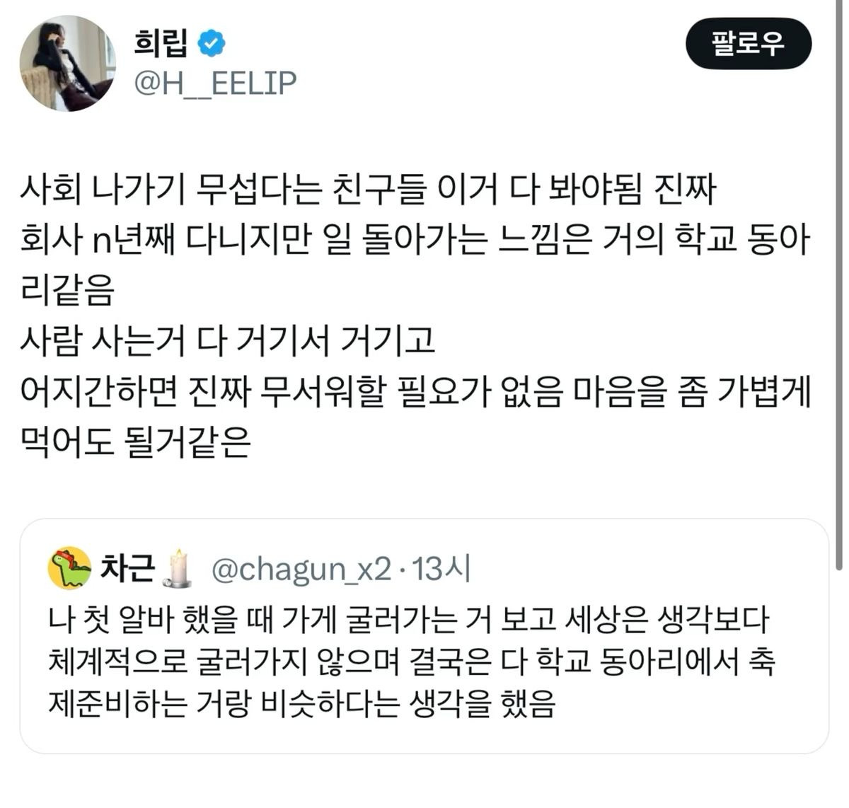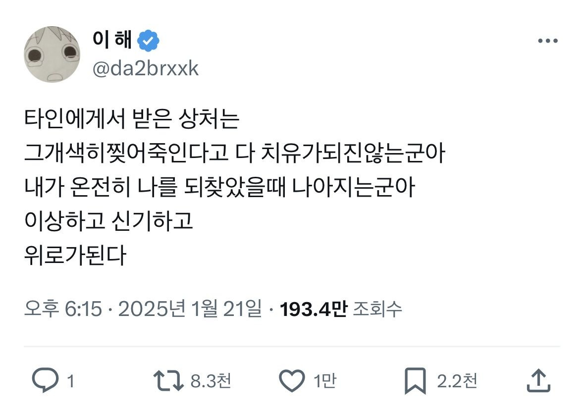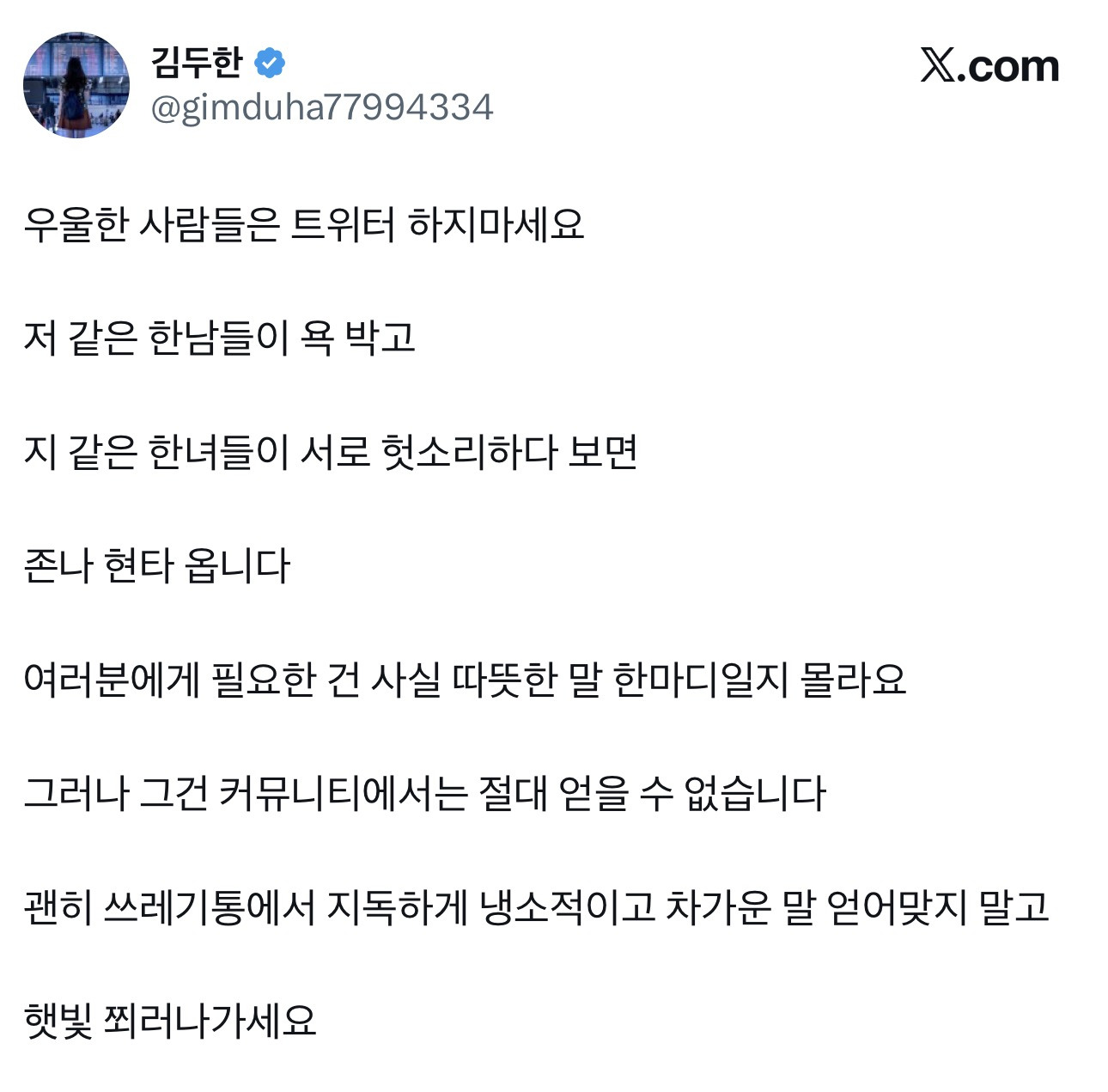 [짤털]인생 꿀팁 다 풀었음 작성자안녕허손요|작성시간26.03.02|조회수133,783 목록 댓글 647 글자크기 작게가 글자크기 크게가 출처 : 여성시대 안녕허손요 다음검색 현재 게시글 추가 기능 열기 북마크 공유하기 신고 센터로 신고 댓글 댓글 647 댓글쓰기 답글쓰기 댓글 리스트 작성자건들지마라ㄹ | 작성시간 26.03.15 굿 작성자훌라훌라훌라프 | 작성시간 26.03.15 필요했어 고마워 작성자슬로운 | 작성시간 26.03.18 바이블이다ㅜ 작성자따봉여시들 | 작성시간 26.03.19 북마크해놓고 또 보러왔어.. 너무 좋아 ㅠ 내 길잡이야... 힘들때 넘나 힘이돼 작성자Noel Gallagher | 작성시간 26.03.23 지금 내 상황에 와닿는 문장들이 너무 많다 고마워 위로해주는 멋진 사람들이 참 많네 댓글 전체보기