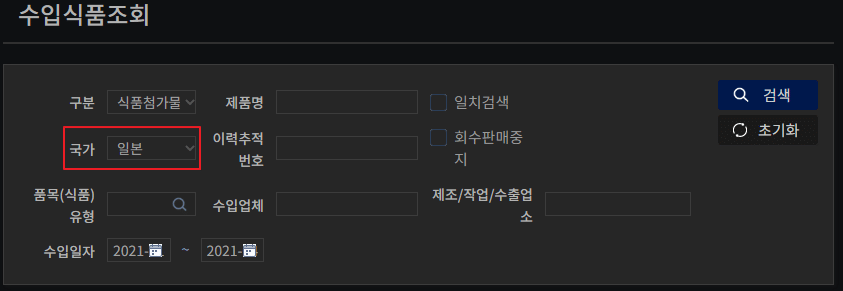 가공식품 중에 일본산 재료가 들어갔는지 알고 싶다면 수입식품정보마루에서 검색 가능해