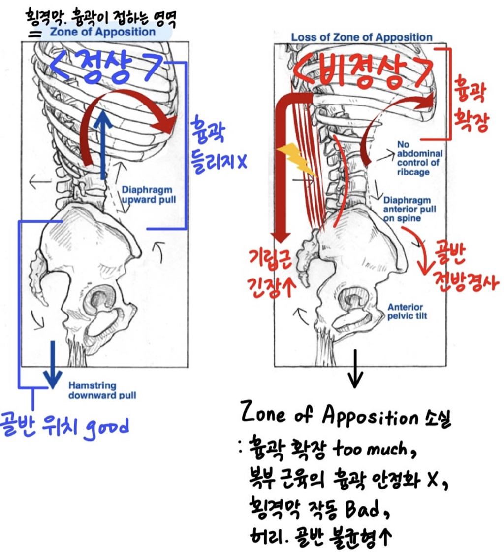 코호흡은 상체의 중심인 흉곽의 안정성을 높히기 때문