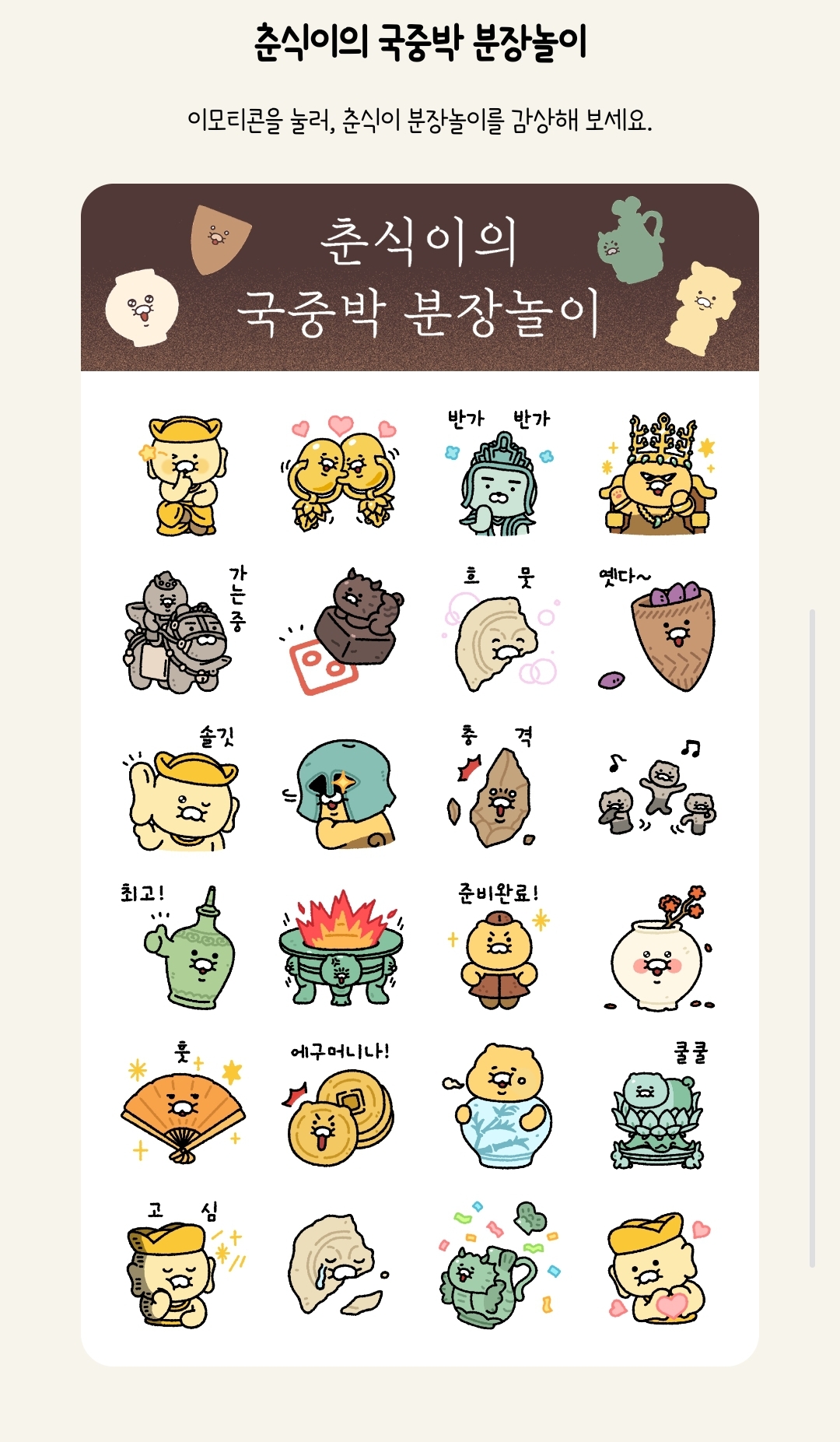 [무료이벤트]카카오톡 이모티콘 증정 이벤트 작성자로또언제되냐|작성시간12:17|조회수10,392 목록 댓글 66 글자크기 작게가 글자크기 크게가 출처 : 여성시대 (로또언제되냐)카카오프렌즈와 국중박 보물찾기국중박 소장품 8선 중 내 최애 보물 찾고 이모티콘 받자!b.kakao.com이모티콘은 다운로드 받은 날로부터 15일간 사용할 수 있습니다. 다음검색 현재 게시글 추가 기능 열기 북마크 공유하기 신고 센터로 신고 댓글 댓글 66 댓글쓰기 답글쓰기 댓글 리스트 작성자인생여전그래도간다 | 작성시간 18:50 new 받았다 졸귀네 작성자샘스윗스 | 작성시간 19:20 new 작성자치즈가치즈 | 작성시간 19:33 new 귀엽닼ㅋㅋㅋ 고마워 작성자창기백기 | 작성시간 2시간 3분 전 new 작성자그래, 너 | 작성시간 2시간 1분 전 new 댓글 전체보기