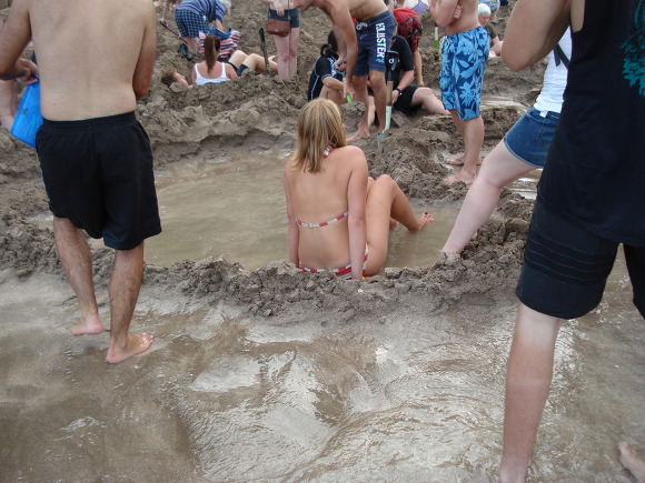 요렇게 모래로 물을 막아서 바닷물을 섞어서 몸을 담구는데