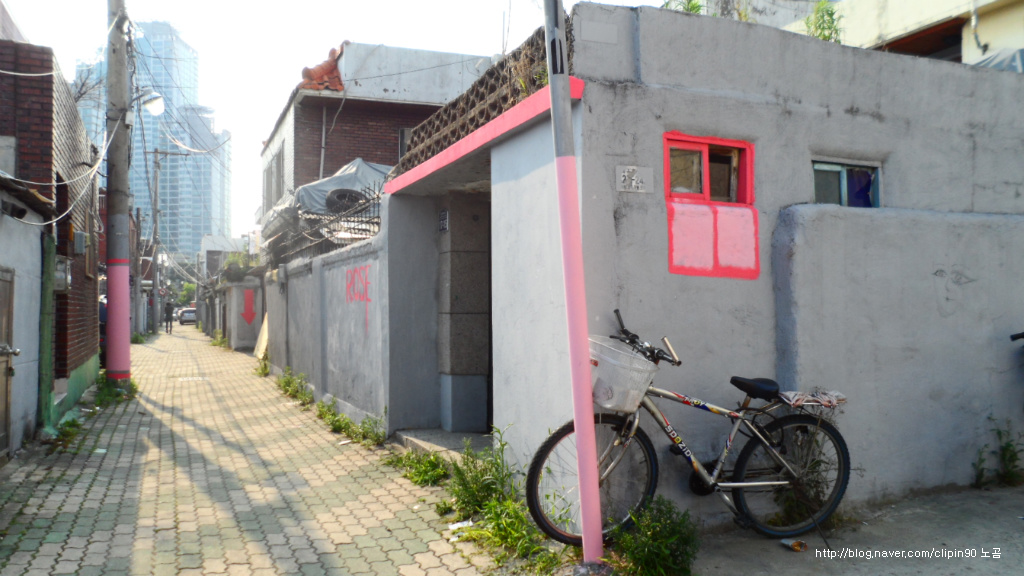 여긴 아직 벽화를 안 그린 곳인데, 곧 그릴 예정인거 같았어.