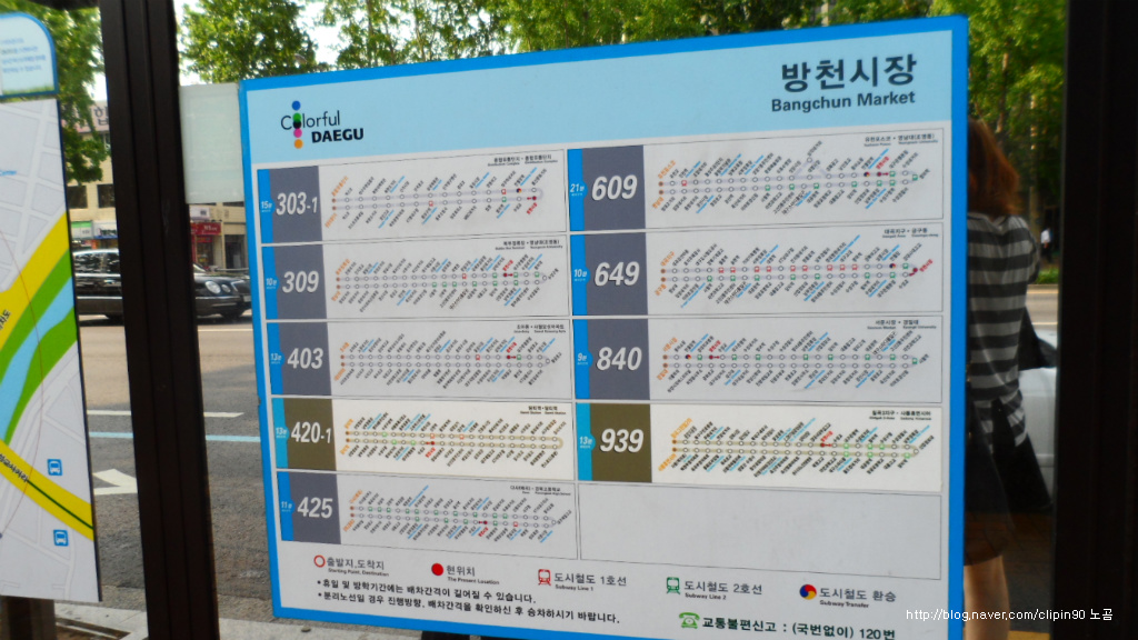 방천시장으로 오는 버스들.