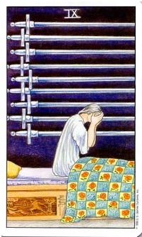 정방향 : 걱정. 공포, 절망 , 실망. 기만, 고통, 실패. 불안. 상처. 비탄. 이별. 슬픈상황, 우울증,, 순교, 근심. 절망. 실책. 불행,