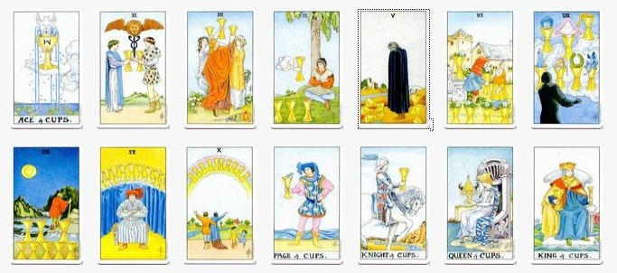 이렇게 총 14장씩 칼, 지팡이, 펜타클, 컵이 있어.