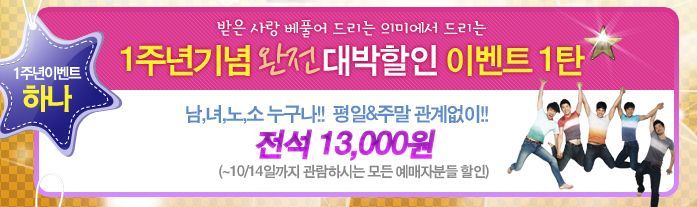 아, 그리구 우리는 특별할인권으로 두 명이서 2만원에 봤는데, 지금 행사중인 것 같더라!!