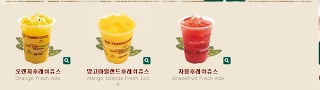 망고 오렌지 자몽있고 원액에 얼음 물이라는데
