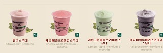 에이드 종류는 체리, 스트로베리 키위 믹스베리 망고