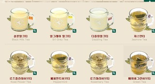 자스민플라워, 로즈플라워 , 페퍼민트 , 로즈마리, 베이비그린티, 캐모마일 ,국화차