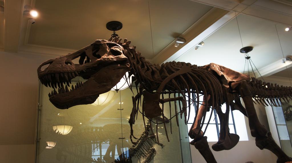 위에가 메트로폴리탄 아래가 자연사박물관 내에 공룡뼈