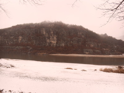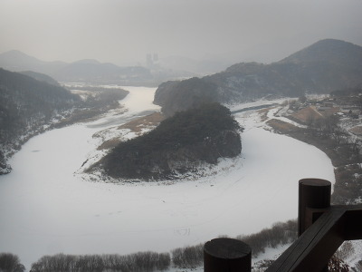 저기 미니섬같이 보이는게 강위에 있는건데 강이 얼어서 그냥 하얀땅처럼 보이는거임 ㅋㅋ