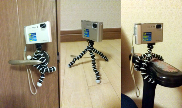 사물에 잘 붙기 때문에 옆에 적당한 나무나 손잡이,물건같은데 붙여넣고 씐나게 막찍음ㅋㅋ