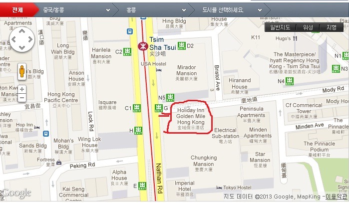 MTR침사추이역 G 출구 바로 앞이라 위치 굳, Nathan road에 위치