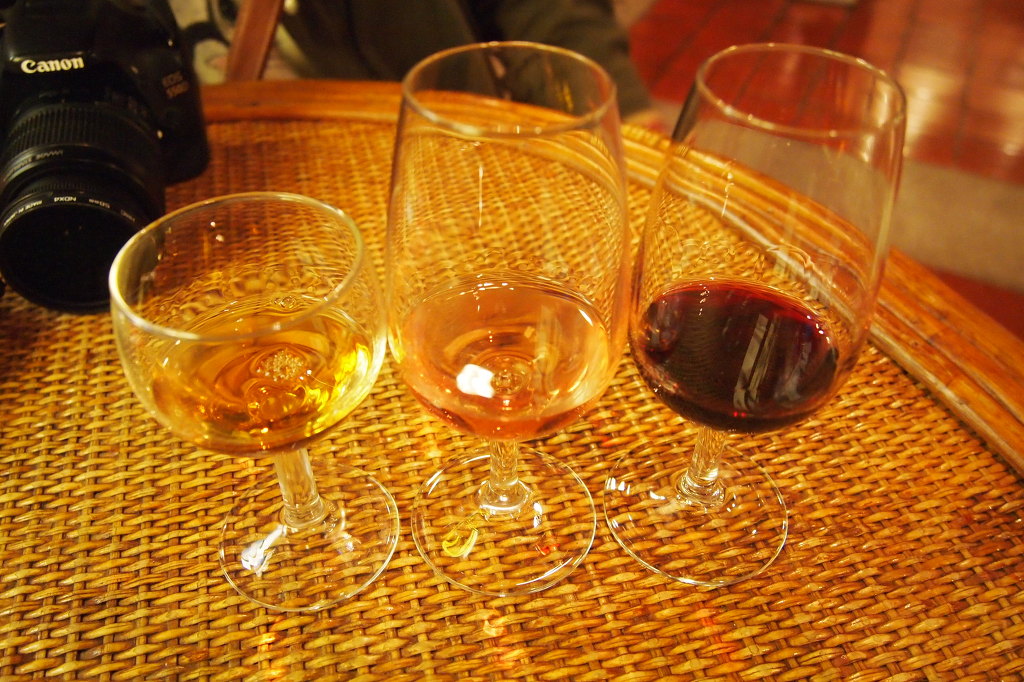 포트와인 3종류 일반와인3종류 해서 총 6병의 와인중에 세개 골라서 마셔보는 체험임