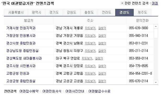네이버에 '여권 발급 기관'이라고 검색하면 지역별로 여권 발급처가 떠.