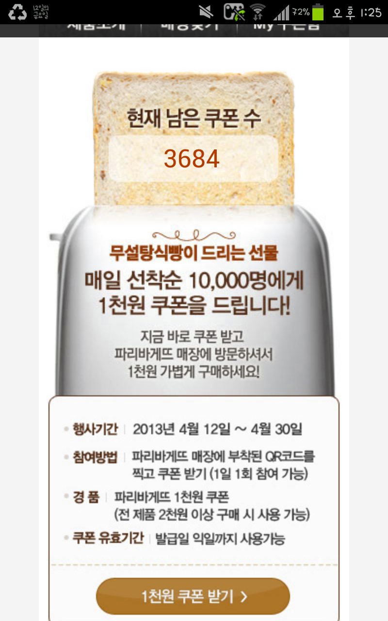 오늘 쿠폰 다운받으면 기간은 내일까지야!
