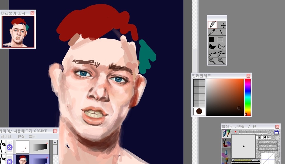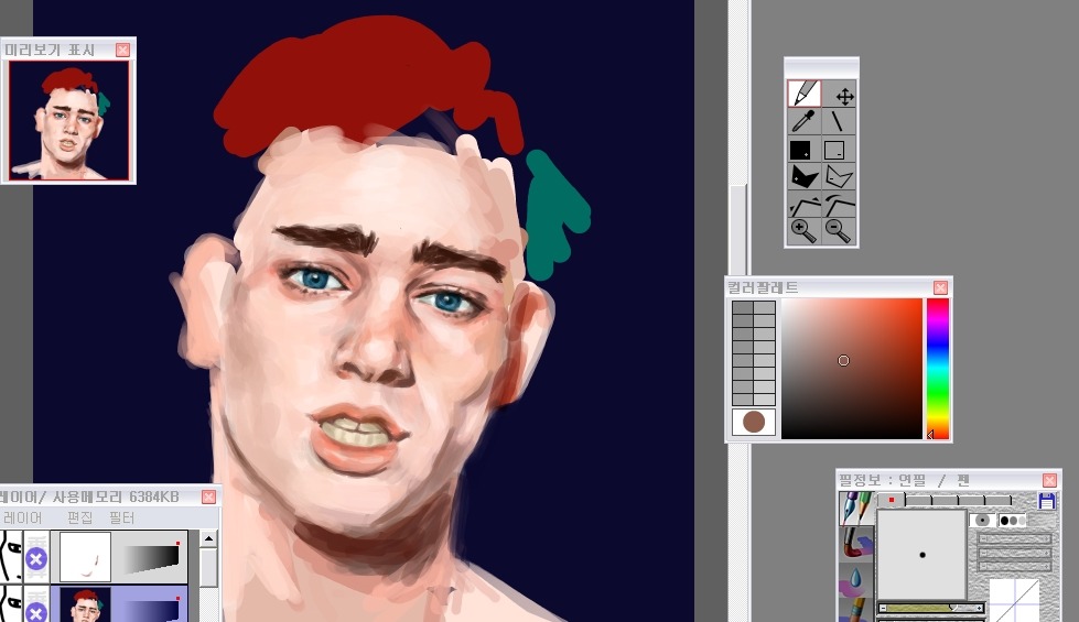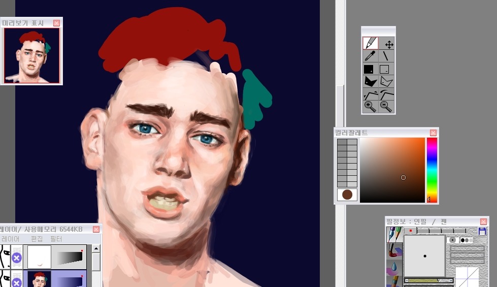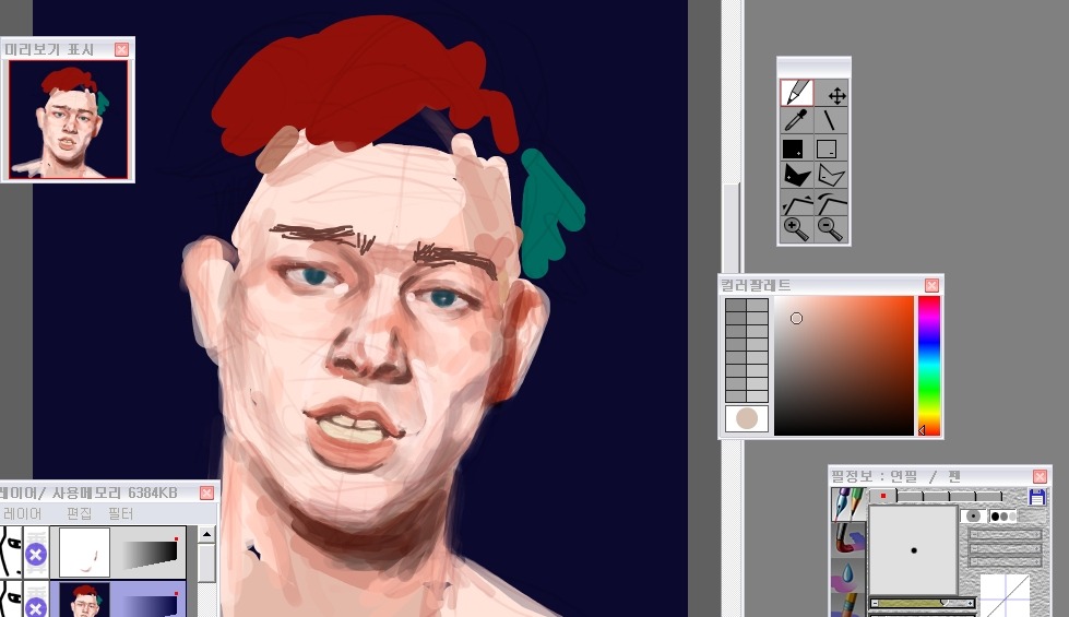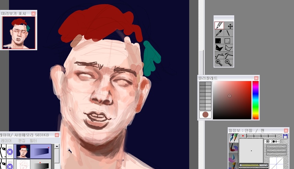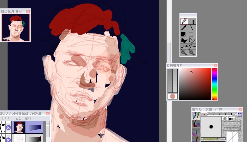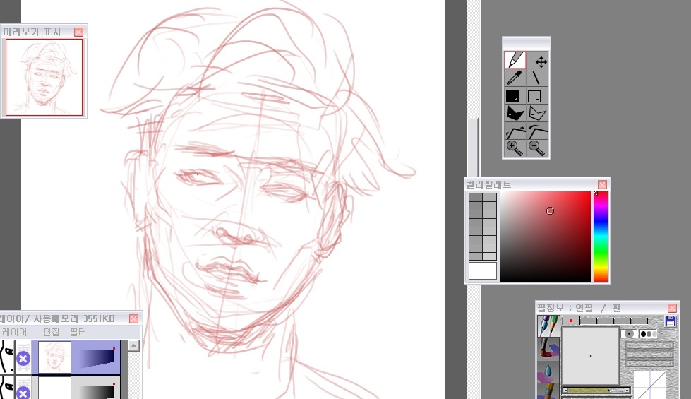 그래서 나는 눈-코-입 이순서대로 형태를 먼저 다듬어놓고 얼굴을그려