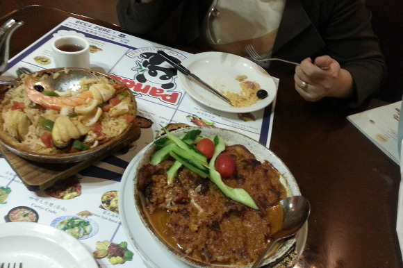 우린 해물밥과 아프리카 치킨을 시켰어!