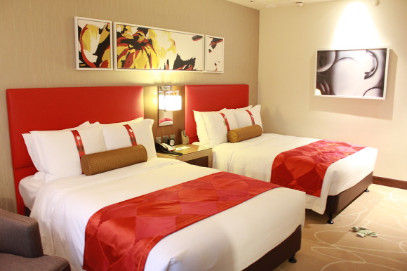 우리가 지낸 호탤방!ㅎㅎㅎㅎ 홀리데이인 호텔이 지어진지 얼마 안돼서 그런지 깔끔하고 모던한 느낌의 인테리어로 되어 있었어ㅎㅎㅎ(널부러진 양말주의..)