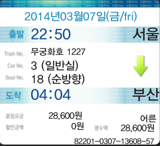 무궁화호 열차로 가격은 28600원!