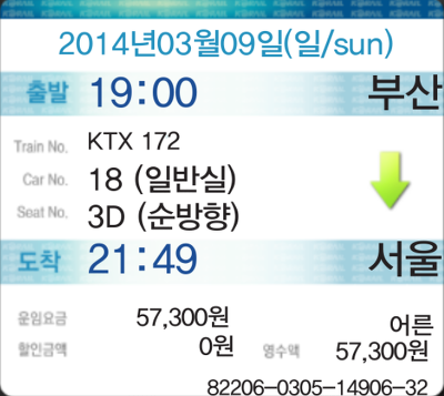 1. 서울역 출발 (03/07 22:50 서울 → 부산 )
