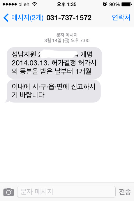 고작 한달 반만에 개명허가 문자가 뙇!!!!!!!!!!!!!!!!!!!!!!!