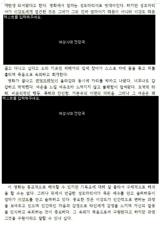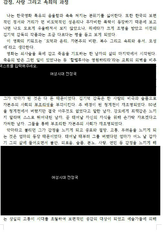 아래에 첨부할 수업의 경우에는 기독교 관련 수업이기 때문에 교수님이 영화 피에타를 보고 감상문을 써오라고 한 이유가
