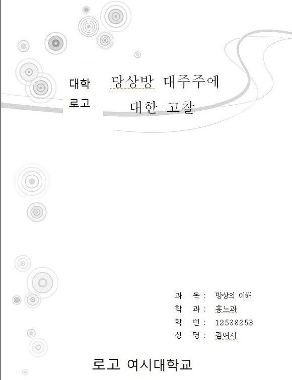 네이버 같은데 자기 학교 레포트 표지 검색하면 아마 양식 꽤 나올걸?