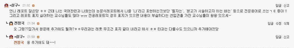 레포트만은 교수님들이 칭찬하고 언급하고 그러셨기 때문에