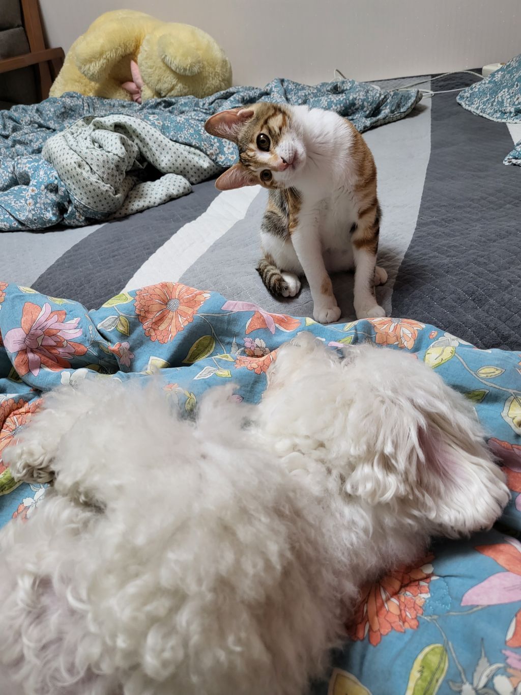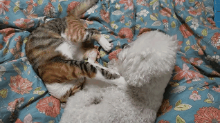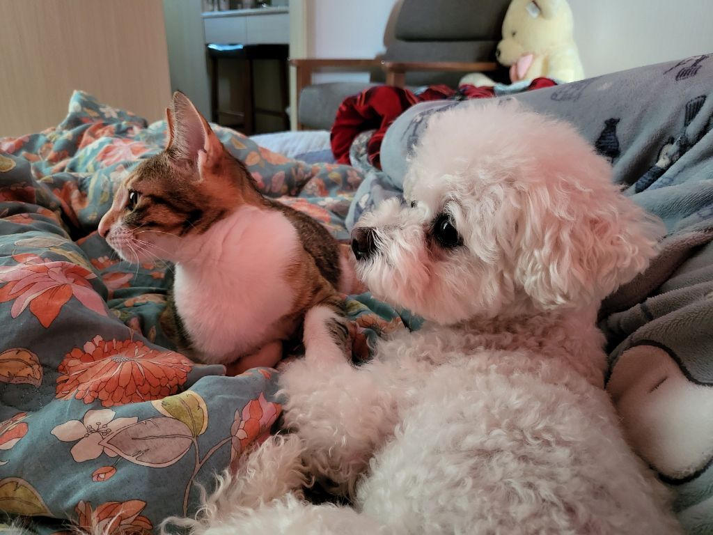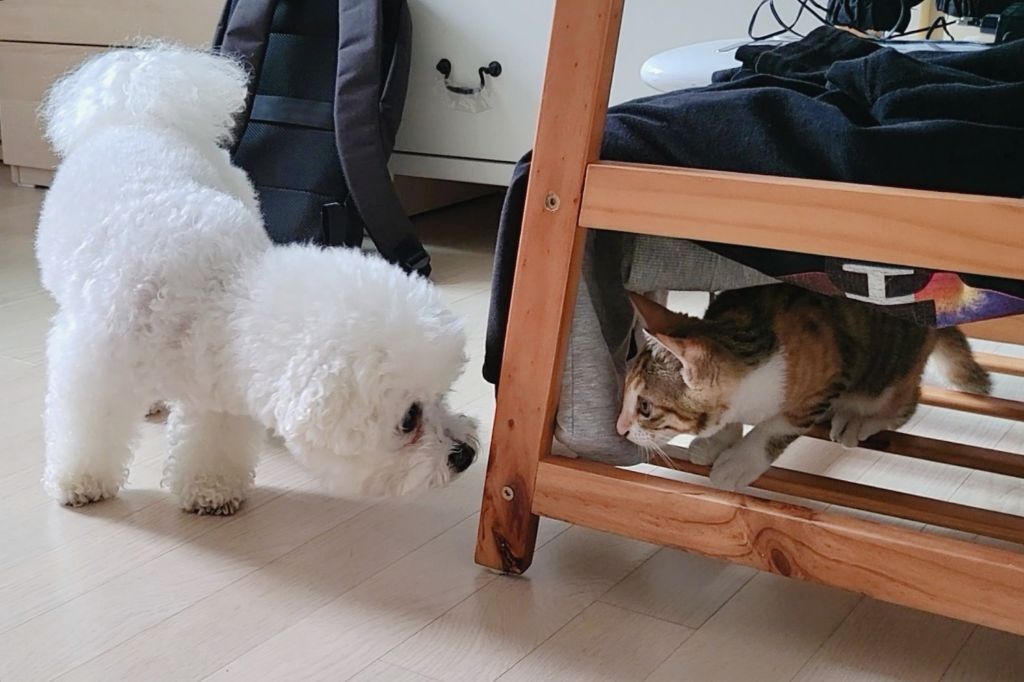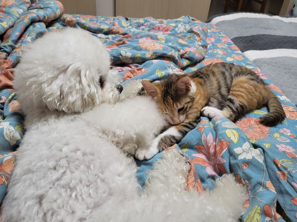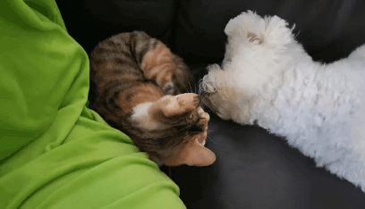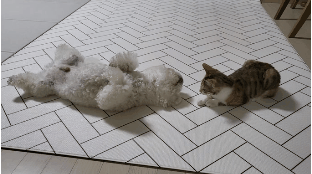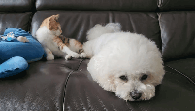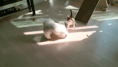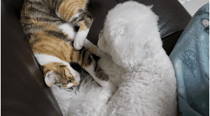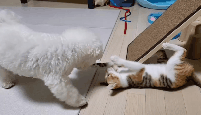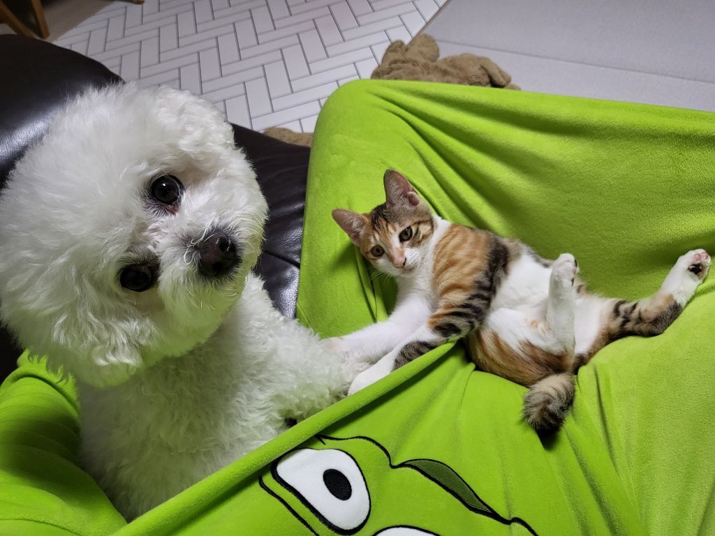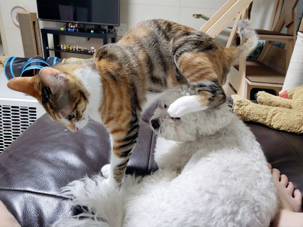 근데 고양이가 자꾸 놀자고 괴롭혀서 강아지는 좀 귀찮아하긴해